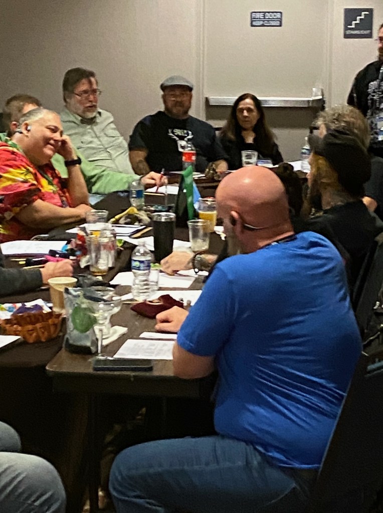 Sunday morning had a change of schedule for me. Kelsi Dione became sick and could not run her game. Fortunately for us, Baron de Ropp stepped up and ran a fantastic game for us in the morning. His game was incredible. He kept everyone engaged and participating, the pace was just right, made it exciting and extremely fun. If you want to check out Shadowdark, you can get more information here: https://www.thearcanelibrary.com/