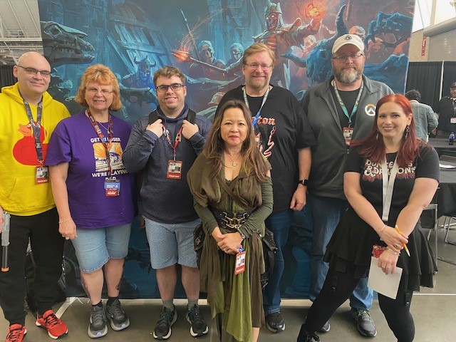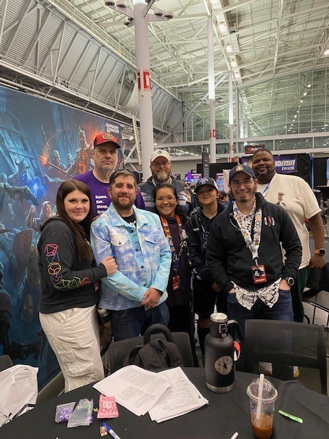 Larian Studios did not disappoint. This was there set up. We checked out the Roll for Combat booth and got to talk to Stephen Glicker. I asked about the release of Elemental Storm, and he responded with “it’s 98% done”. We moved on to Q-Workshop to ask about getting some prototype dice made up. I was asked if I had a business card ……. , I was also asked if I had a business card at the DnD games I played in as well ….., see the pattern here. I don’t have any business cards made or on me. That night we ate at the Brazilian Steakhouse in our hotel . While at dinner we seen the cast of Acquisitions Incorporated.