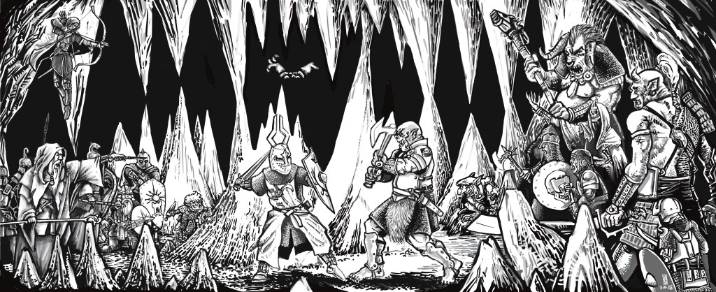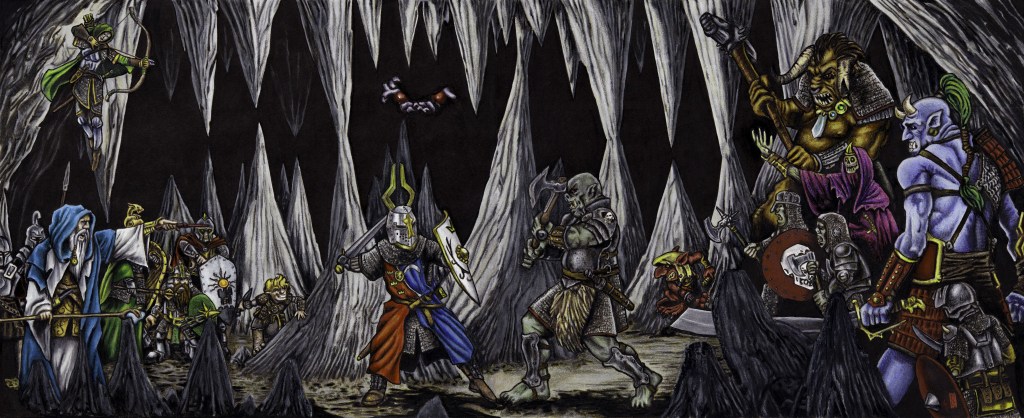Lastly, we are working on finding a printer for a proposed DM screen for Shadowdark and Shadowdark Depths. For the Shadowdark DM screen we plan to use this Joey Docil art; colored version done by Chris Schaeffer.