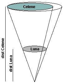 Celene is twice as far as Luna; so that Thales teach us that about radiuses (real ones, not visible ones): Rcelene = 80% of 2 * Rluna